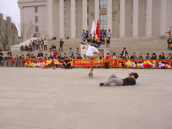 長春建筑學(xué)院“炫空”滑板協(xié)會第三屆滑板比賽于2012年4月21日12:00在學(xué)校水景廣場舉行,包括我校炫空滑板社的精英成員,以及來自長春市其他15所高校和社會滑板愛好者在內(nèi)的70名選手參加了比賽。