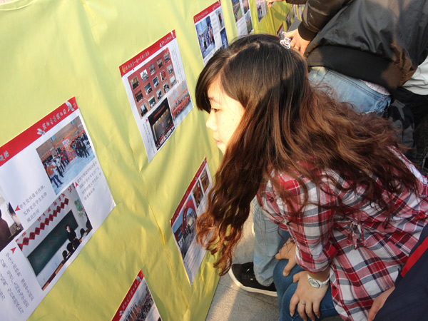 為迎接黨的十八大勝利召開,紀念建團90周年,回顧歷史,激勵廣大青年繼承和弘揚共青團的光榮傳統,堅定跟黨走中國特色社會主義道路的信念,5月7日,我校團委在水景廣場舉辦了“鑄青春輝煌 頌愛黨華章”大型圖片展。