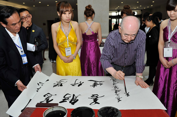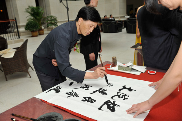 啟動儀式結束后,在我校圖書館一樓大廳進行了筆會,各位將軍、部長、老領導書法家紛紛為助殘月的義賣活動題字。在土木工程學院一樓報告廳,我校學雷鋒志愿者聽取了全國、全軍學雷鋒先進典型北京軍區總醫院副政委孫茂芳的題為《雷鋒精神常在我心中》報告。