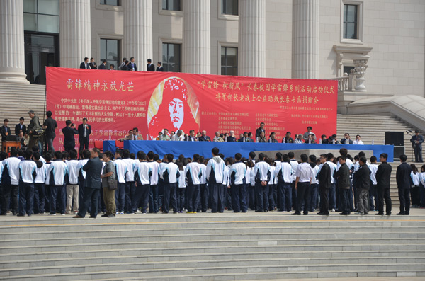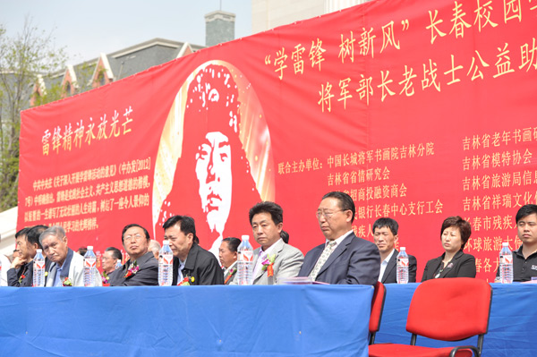 為弘揚雷鋒精神,促進校園學雷鋒活動常態化,由我校與中國長城將軍書畫院吉林分院、吉林省老年書畫研究會、長春市殘疾人聯合會(長春市殘疾人福利基金會)、吉林省旅游局信息中心等共同承辦的“學雷鋒樹新風”助殘月啟動儀式于5月13日在我校水景廣場舉行。