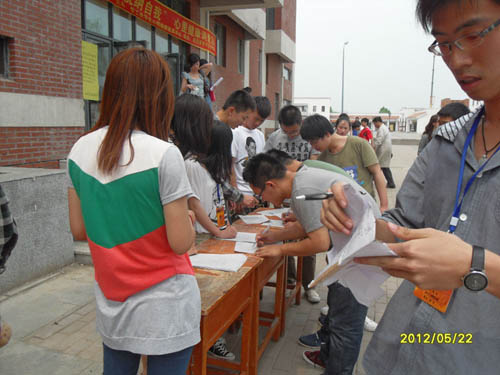 正午時分,校青年志愿者聯合會分別在校圖書館門前,一食堂門口和二食堂門口展開了大學生心理健康調查。同學們好奇的提問及認真的填寫,不僅是對我校過去心理健康教育工作的一次很好的檢閱,同時是對同學們心理健康知識的普及和對該項工作的有效深化。