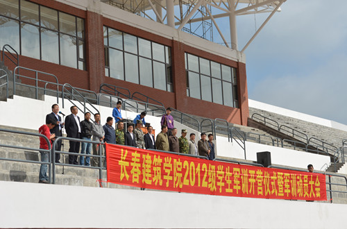 大會在雄壯的國歌聲中拉開了帷幕。首先由校教學管理服務中心主任助理、招生辦公室主任李大偉同志宣讀了《關于成立2012級學生軍訓團及其領導機構組成人員的通知》;校黨政管理中心主任助理、黨委宣傳部部長劉向軍同志宣讀了《關于成立2012級學生軍訓團臨時黨總支的通知》。隨后,軍訓團團長邵志文同志向各營授了營旗。軍訓教官和參訓學生代表分別進行了發言。