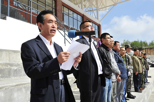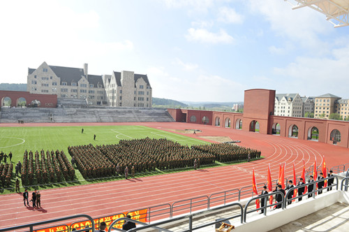 9月5日上午9時30分,我校2012級新生軍訓開營儀式暨軍訓動員大會在體育場隆重舉行。校教學管理服務中心主任助理、招生辦公室主任李大偉;校黨政管理服務中心主任助理、黨委宣傳部部長劉向軍;校學生管理服務中心主任助理、學生工作處處長王浩強、第十六集團軍直屬防化營洗消連連長邵志文;校團委、校就業指導中心、校保衛處主要領導和各學院黨總支書記(副書記)出席了開營儀式。開營儀式由學工處李琦老師主持。