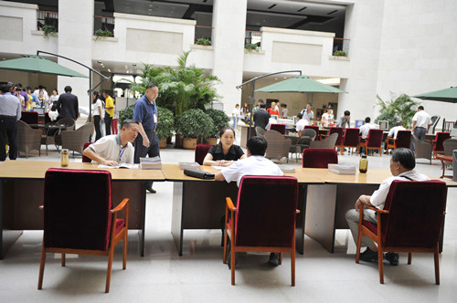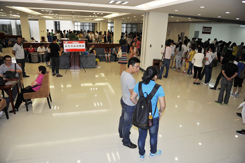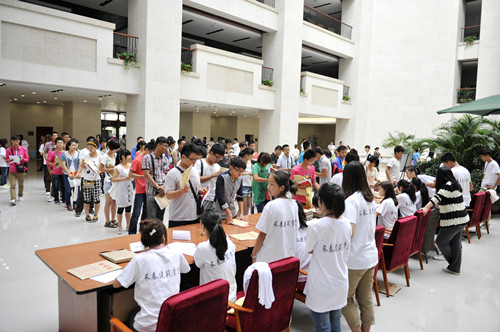 9月1日,我校2012級新生入學報到接待工作如期展開。上午7時,工作人員便開始了緊張忙碌的工作。在圖書館報到現場,接待工作有條不紊,井然有序。校園內外,舞動的彩球,獵獵的彩旗,還有那寫滿熱情洋溢、催人奮進的標語條幅,伴隨著大學生軍樂團奏出鏗鏘的迎賓曲,整座校園顯得熱烈、喜慶。校門外車水馬龍,一度送新生的車輛排成一公里長隊。校園內人頭攢動,新生報到的場面熱火朝天。這一切,都顯示出了我校的勃勃生機與活力。