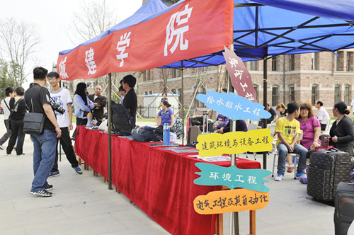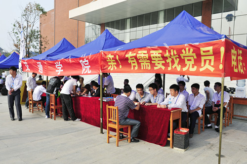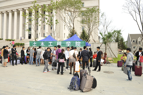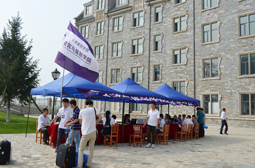 各學院及部門認真研究迎新方案,創新形式,豐富內容。交通學院的一條“親,有需要找黨員”的條幅,及其特色服務引人注目;教學樓前展示未能畢業的學生名單,以異樣方式激勵新生,別具一格;自備冰激凌機現場為新生及家長提供解暑飲品,凸顯溫馨。建筑與規劃學院把20條經典的勵志警言,做成10個(雙面)展示屏風,立于門前,清新靚麗;“成長沃土、成才搖籃”八個大字立于綠草坪上,格外醒目。管理學院為幾乎所有的新生及其家長“立此存照”,在美麗校園留下“全家福”,既可保存資料備用,又可擴大宣傳,頗具匠心。土木工程學院對新生家長們提出的寢室質疑,曉之以理的耐心做解釋工作,使家長釋懷并高興離去;對沒有家長陪伴的新生指派專門教師全程協辦報到手續,突顯工作細微。其他各學院也都采取各有特色的措施,全力做好有質量的迎新工作。