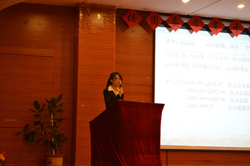 校團委書記劉志偉首先致辭,他高度贊揚了2009級全體學生干部,稱贊他們是學校搬遷的見證者、學校發展的建設者、校園文化的傳播者、校園安全的保衛者、大學精神的凝練者。同時對新一屆學生干部提出了希望:接過手中的接力棒,用青春與熱血“鐵肩擔道義、妙手著文章”,為學校的建設與發展奉獻,為同學們良好的學習和生活環境服務,為團組織的進步與創新努力,為完美實現大學生活目標和鋪墊人生成功基石而奮斗。