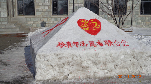 與此同時,校青年志愿者聯合會在土木工程學院實驗樓進行主題海報展覽活動,本次展覽作品是經過各學院的精挑細選后才向全校師生展出的。參觀展覽時,同學們相互交流著自己的見解,一幅幅栩栩如生的海報,讓師生們對艾滋病有了較直觀的認識。校青年志愿者聯合會為進一步宣傳艾滋病日,特在土木工程學院實驗樓前做了雪雕,雪雕上紅絲帶栩栩如生,讓此次艾滋病宣傳活動更加富有生機。