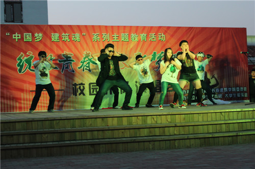 2013年5月16日,在我校校園小廣場,中國夢建筑魂系列主題教育活動之“音潮澎湃,樂動你我”校園歌手大賽拉開帷幕。 這晚,全校校園歌手大賽的16位選手,在此角逐。出席本次比賽的嘉賓有吉林電視臺節目主持人安然、吉林資訊廣播電臺100.1節目主持人函羽、青年作家汪默琳、歌手郝洪平、校團委書記劉志偉、保衛處處長楊威、校團委老師李陽,王丹童以及各學院輔導員。