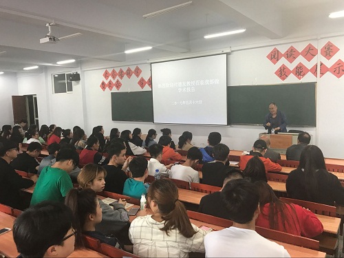 付德友教授的講座首先從應用數學的產生講起,強調了通過人類與自然斗爭的進程,及其與應用數學發展關系的緊密性,闡明應用數學在人類發展中扮演的重要角色。從刀耕火種的原始社會到知識爆炸的信息時代,從經濟學科到天地生化物的各個學科,從草繩記數到核磁模型等等,為師生們詳細論述了應用數學與社會發展的關系。