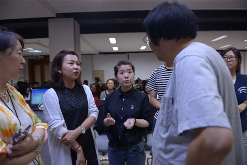 講座中,曹保明教授利用通俗生動(dòng)的語言,塑造出一個(gè)個(gè)形象鮮明的故事,為同學(xué)們展現(xiàn)出東北的文化,民俗的創(chuàng)意。講座中曹保明教授指出創(chuàng)意是在不斷的思考中,通過各種知識(shí)的積累穿插中完成的,其創(chuàng)意應(yīng)符合地域民俗。講座后期,曹保明教授與同學(xué)們進(jìn)行了互動(dòng),與我院龐曉婷副院長(zhǎng)進(jìn)行了交談。