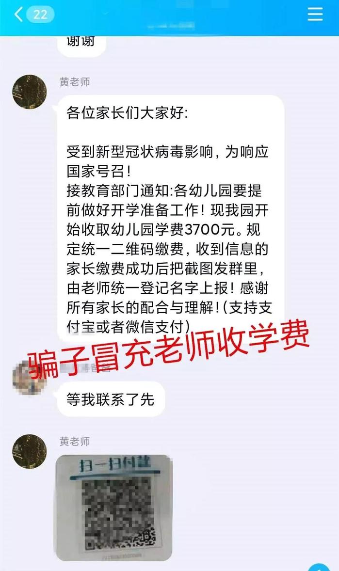 寒假以來,為切實做好教育系統新冠肺炎疫情防控工作,各地教育部門、學校相繼延期開學并因地制宜積極組織開展線上教學。近期,據一些中小學生家長反映,有人通過班級微信群、QQ群等媒介假冒學校教師或班主任身份,以延期開學和組織開展線上教學為由發布詐騙信息要求學生家長通過微信、支付寶等網上支付方式繳納各項費用,致使部分家長上當受騙。