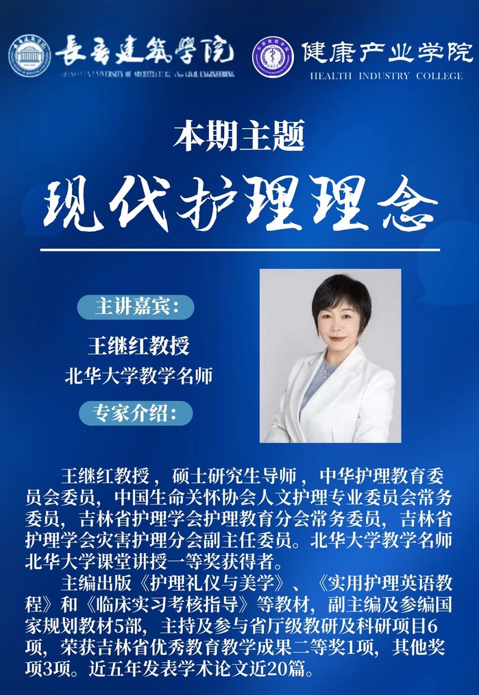 5月26日,應(yīng)學(xué)校健康產(chǎn)業(yè)學(xué)院邀請(qǐng),北華大學(xué)護(hù)理學(xué)院王繼紅教授通過視頻會(huì)議的形式為師生作了題目為《現(xiàn)代護(hù)理理念》的學(xué)術(shù)講座。講座由學(xué)校健康產(chǎn)業(yè)學(xué)院院長劉玉和主持。