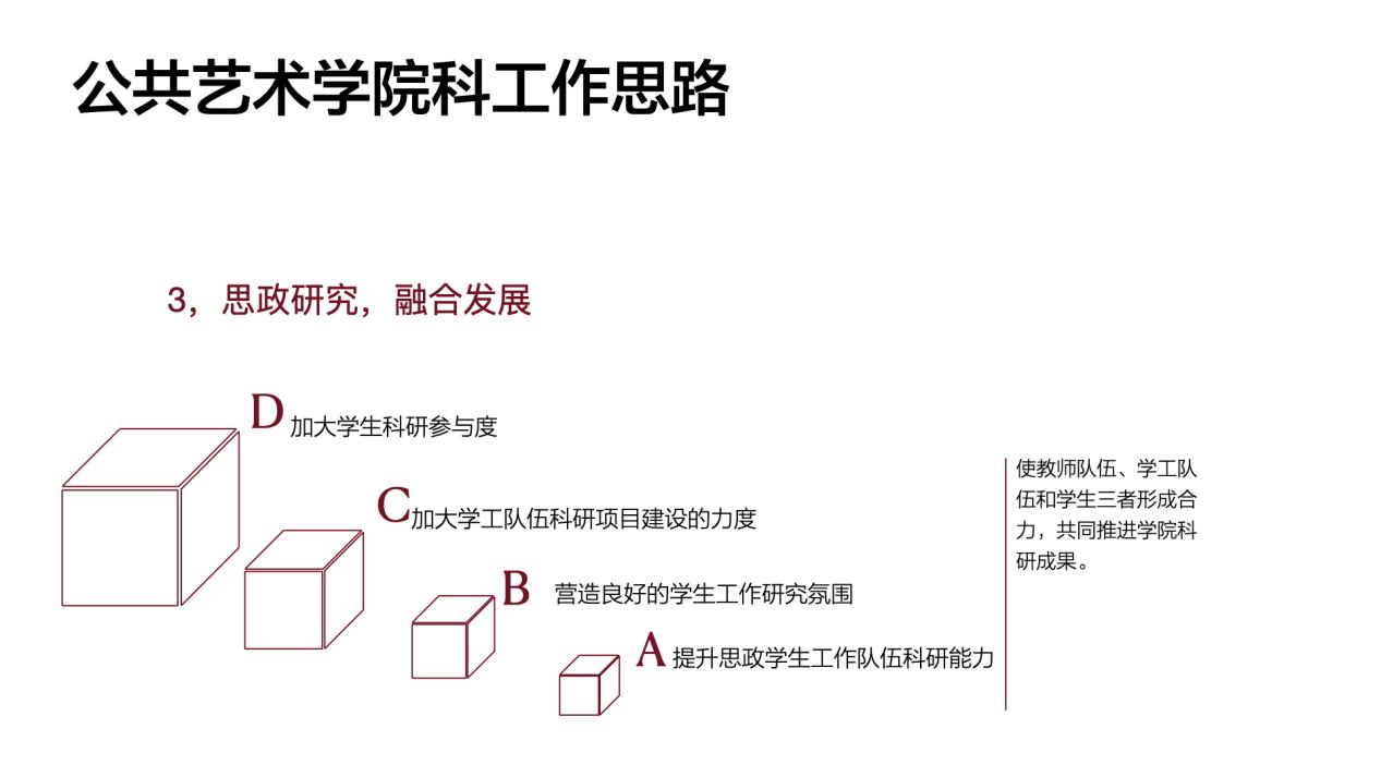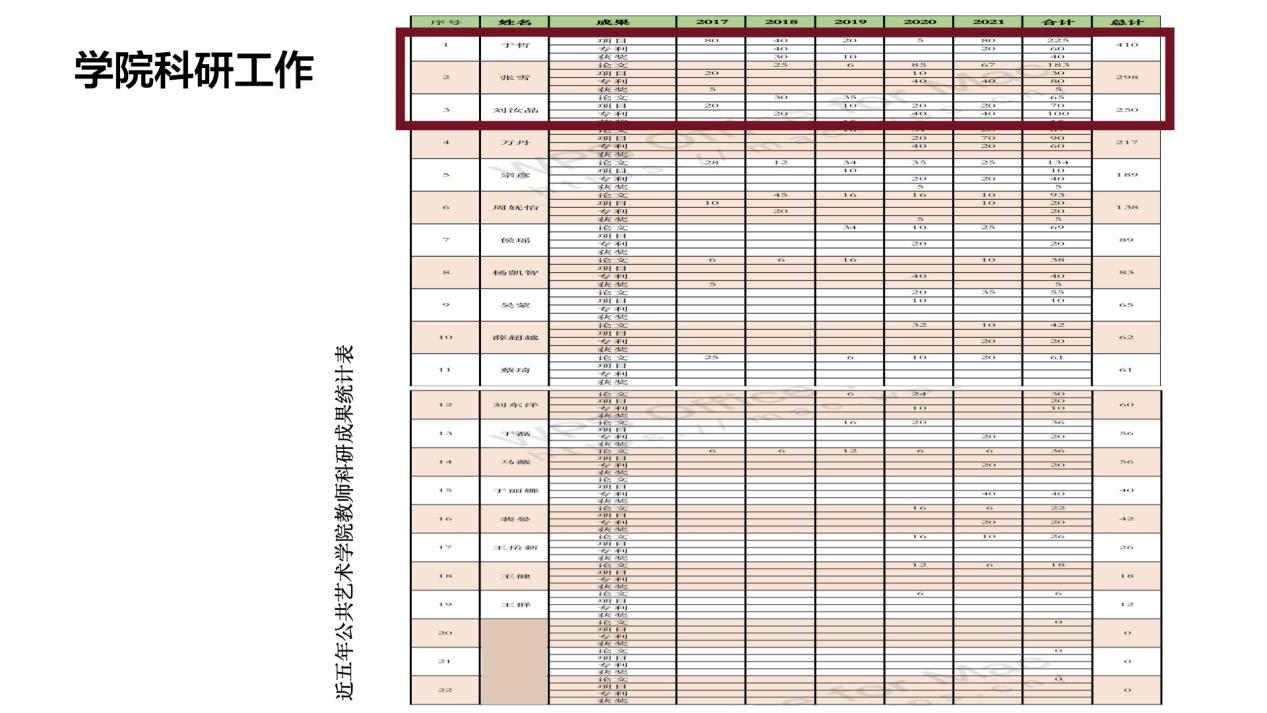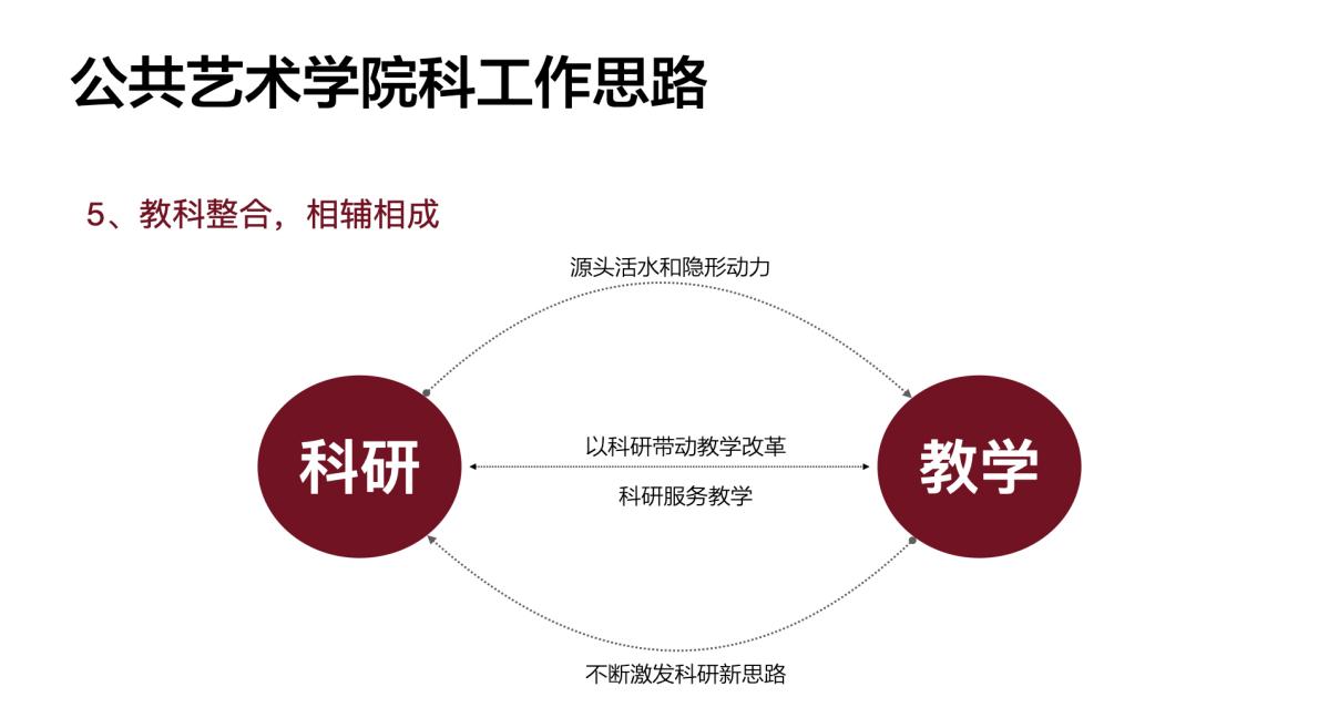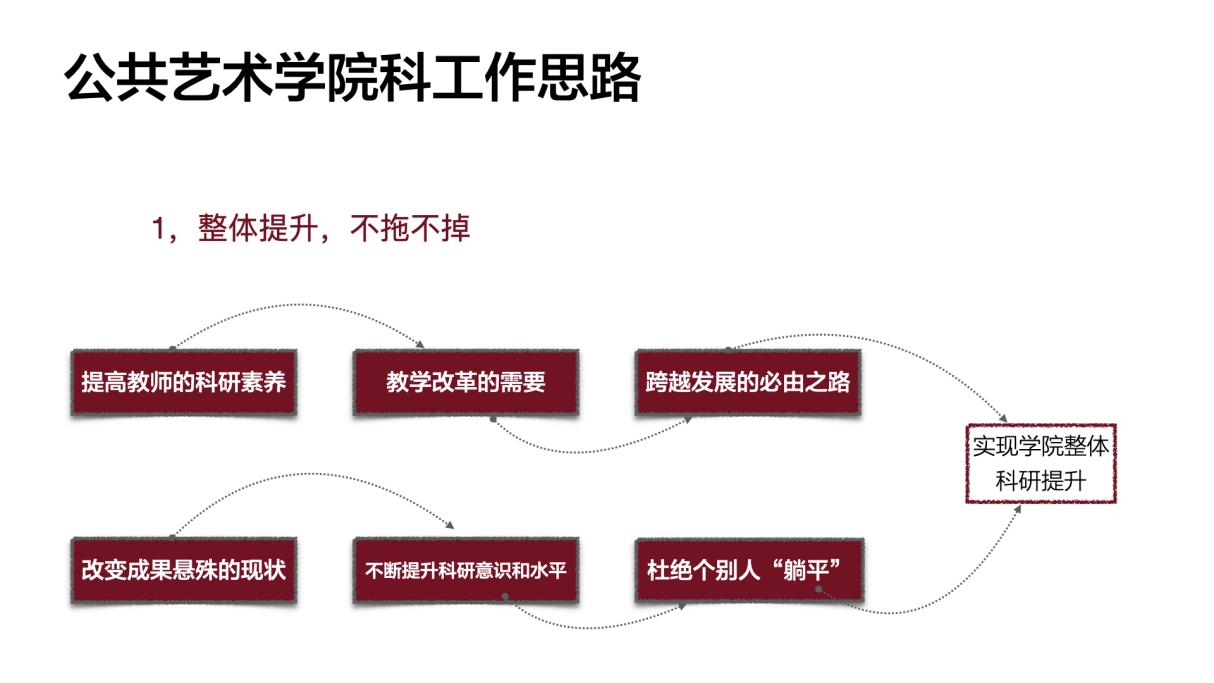為實現“十四五”時期學校發展戰略目標,構建完善了科研激勵機制、獎勵機制和評價機制等內容,強化內涵建設,提升科研核心競爭力,積極推進科研育人理念,提高教師科研能力,營造可持續的科研文化氛圍。學校科研處搭建供教師們學習交流的科研橋梁,組織科研工作做的突出的先進集體和先進個人進行經驗分享,激發教師積極投入科研的熱情,充分認識科研工作的重要性,提升教師科研素養,展示科研成果,創新科研能力。本期分享單位為公共藝術學院。