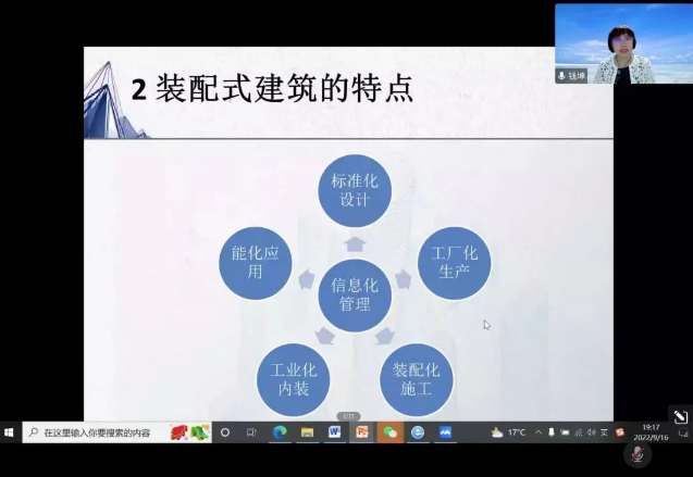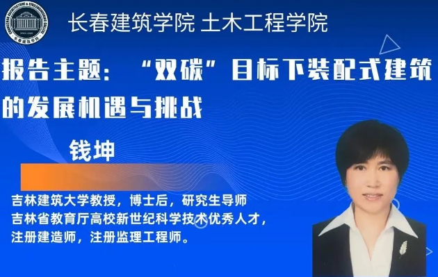 報(bào)告會(huì)上,錢坤教授從“雙碳”理念下裝配式建筑行業(yè)發(fā)展背景,裝配式建筑定義、裝配式建筑特點(diǎn)、裝配式建筑優(yōu)點(diǎn)、裝配式建筑體系、裝配式建筑的分類、裝配式混凝土結(jié)構(gòu)以及裝配式混凝土結(jié)構(gòu)的組織過程等方面,進(jìn)行了詳細(xì)的講解。錢坤教授是吉林建筑大學(xué)研究生導(dǎo)師,具有博士后科研工作經(jīng)歷,具有國(guó)家注冊(cè)建造師,注冊(cè)監(jiān)理工程師等資質(zhì)。她依據(jù)多年豐富的專業(yè)實(shí)踐經(jīng)驗(yàn),通過大量圖片及視頻,為師生們講解了許多書本上學(xué)不到的知識(shí)。錢坤教授的報(bào)告深入淺出,圖文并茂,用通俗易懂的語言給師生們上了一堂生動(dòng)的專業(yè)課。她在報(bào)告結(jié)束前強(qiáng)調(diào)說:“裝配式建筑發(fā)展前景非常廣闊,需要我們共同努力,攜手共建我們建筑人美好的明天。”