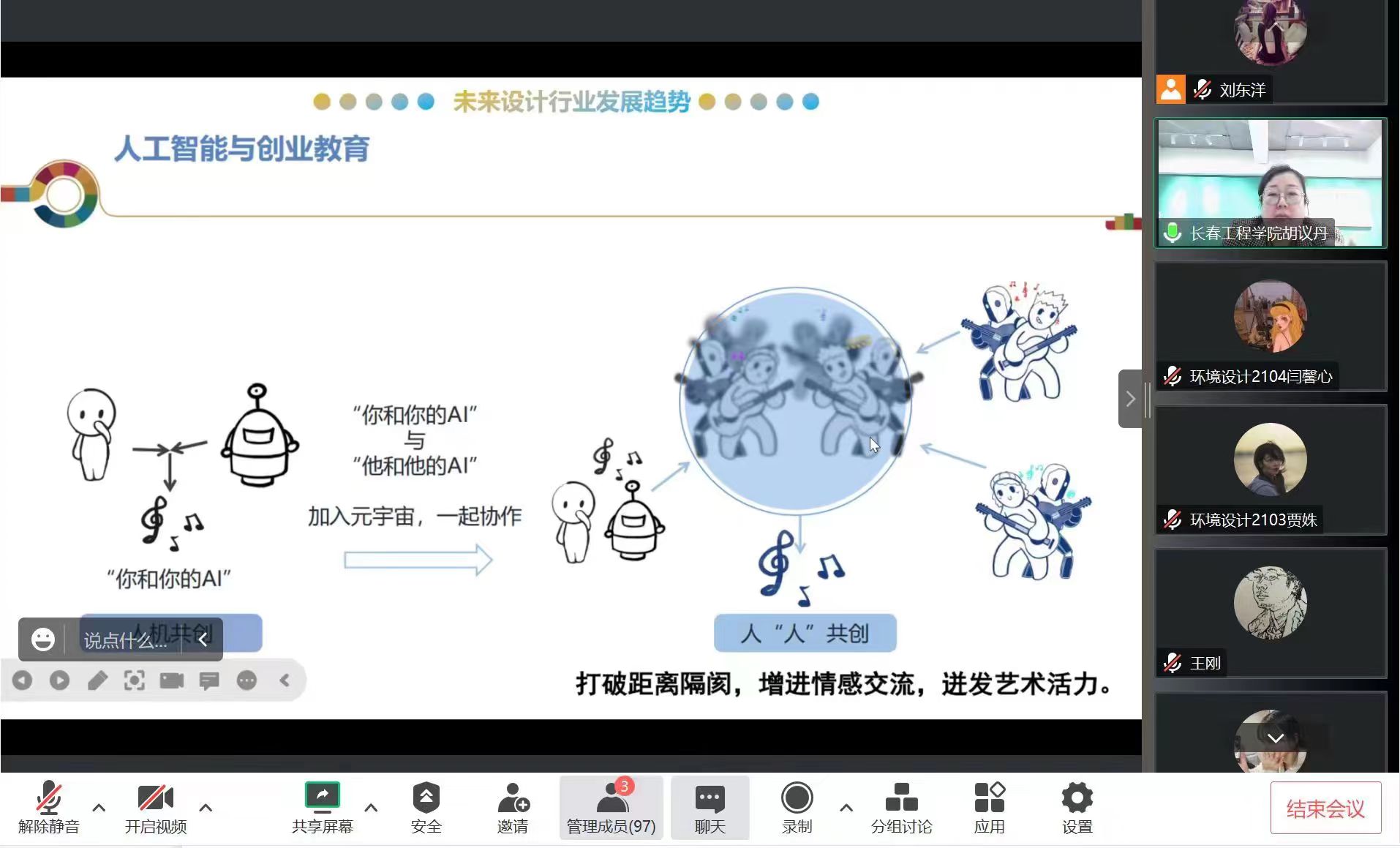 4月28日下午,公共藝術學院舉辦了主題為“未來設計行業發展趨勢及設計案例精講”學術講座,講座邀請長春工程學院大學生創新創業教育學院副院長、碩士生導師胡議丹教授主講。參加講座的有公共藝術學院環境設計、公共藝術和藝術與科技專業的師生。