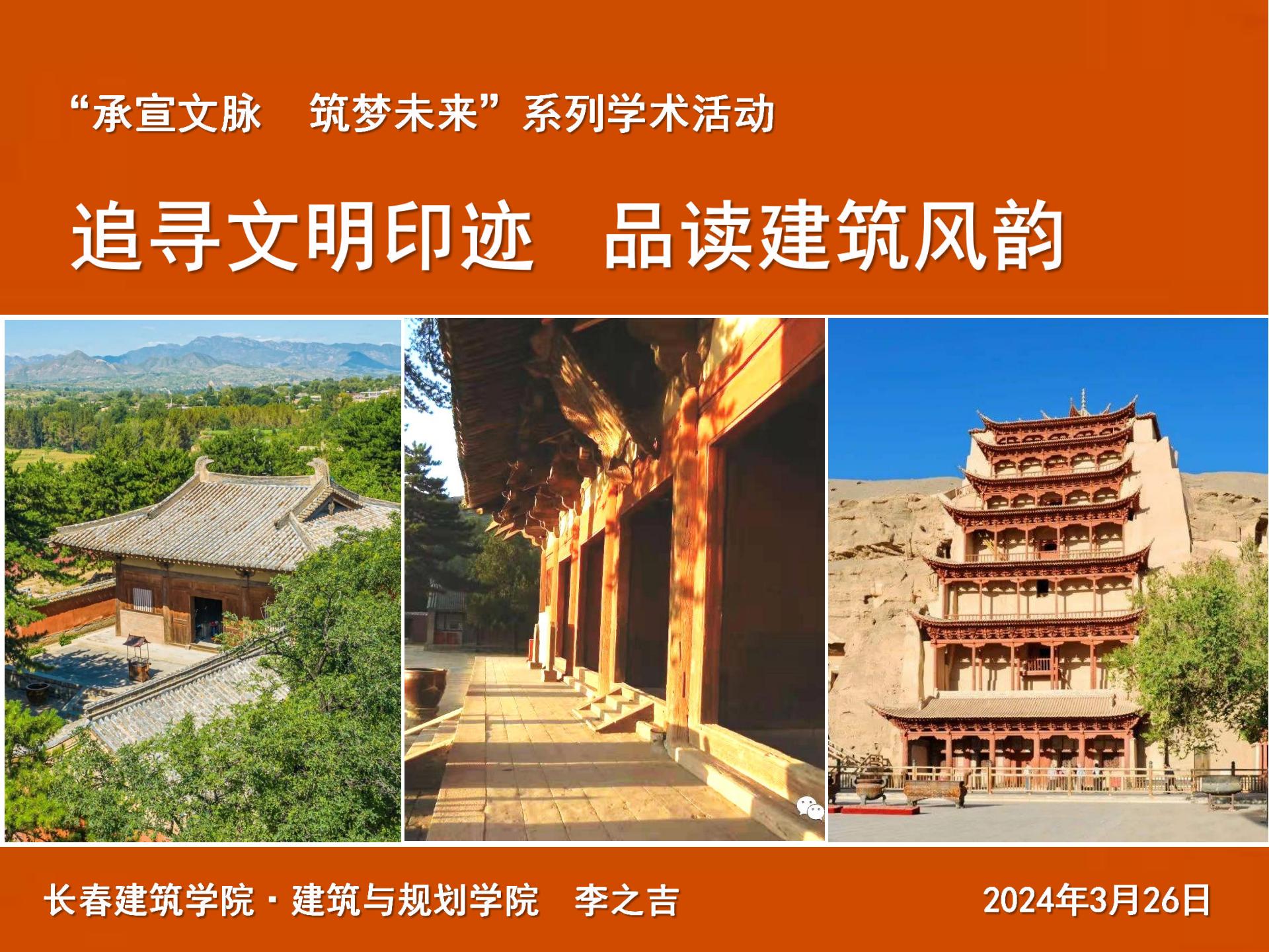 3月26日下午,建筑與規劃學院邀請名譽院長、教育總監、吉林省教學名師李之吉教授在國際學術報告廳主講“追尋文明印跡 品讀建筑風韻”為主題的專題講座。滕佳佳副院長主持了講座,全院師生線上線下同步參加了講座。