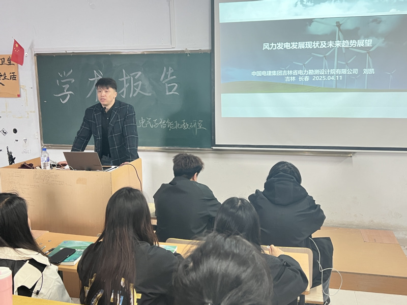 為貫徹落實(shí)學(xué)校“三個三”發(fā)展戰(zhàn)略部署,提升教師科研能力,增強(qiáng)整體科研實(shí)力,推動學(xué)校科研水平邁上新臺階,由學(xué)校科研處牽頭,各學(xué)院(部)相繼組織承辦學(xué)術(shù)交流系列活動。官微特開設(shè)專欄,連續(xù)刊載2025年度科研能力提升系列活動,為教師們搭建學(xué)習(xí)平臺,也為學(xué)校教育教學(xué)創(chuàng)新注入新活力。第三期由城建學(xué)院承辦。4月11日下午,城建學(xué)院邀請中國電建集團(tuán)吉林省電力勘測設(shè)計(jì)院有限公司的劉凱教授作“風(fēng)力發(fā)電發(fā)展現(xiàn)狀及未來趨勢展望”專題學(xué)術(shù)講座。學(xué)院100余名師生參加。