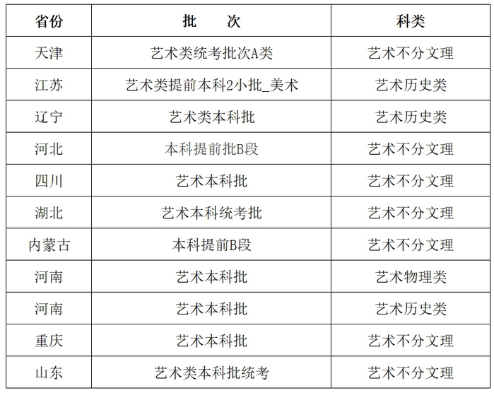 本次發出高考錄取通知書的省份及科類見下表: