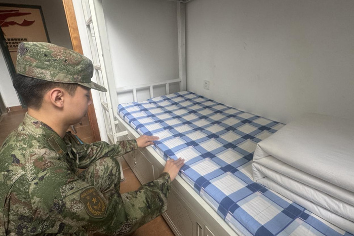 除隊列動作外,口令指揮、內(nèi)務(wù)整理也貫穿集訓(xùn)全程。正午陽光最烈時,教官們一遍遍鏗鏘有力地練習(xí)口號,要求聲音洪亮、節(jié)奏清晰,即便嗓子沙啞也絕不降低標準。宿舍內(nèi),他們比拼疊“豆腐塊”的技藝,床單鋪平無褶皺,物品擺放成直線,每個細微處都透著嚴謹。