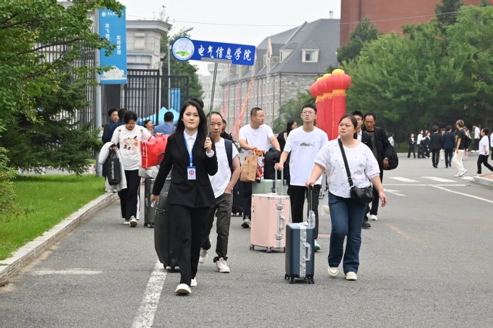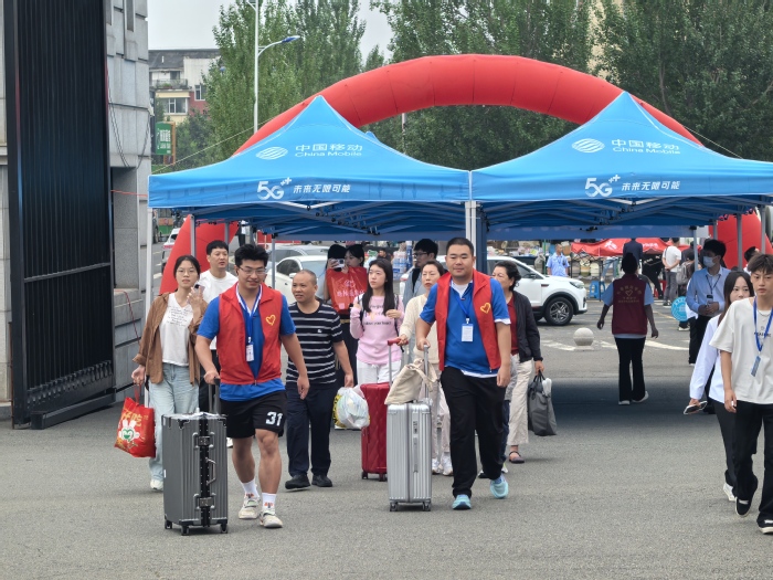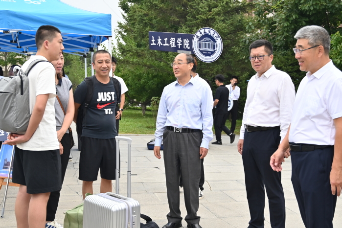 學(xué)校高度重視迎新工作,校長任玉珊、黨委書記李裕剛、執(zhí)行校長孫雷、黨委副書記張冀男,副校長張東鳴、孫萬臣等先后來到奢嶺、高新校區(qū)迎新現(xiàn)場,與新生及家長親切交流,勉勵(lì)新生珍惜時(shí)光,勤奮學(xué)習(xí),成長成才,向送子求學(xué)的新生家長表示慰問和感謝。在與迎新志愿者和工作人員交流中,希望大家要將各項(xiàng)工作做實(shí)、做細(xì)、做到位,確保每一位新生都能順利、便捷、安心地完成報(bào)到手續(xù)。