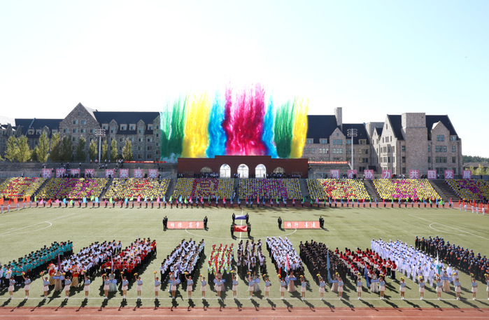 在師生們熱烈的掌聲中,任玉珊宣布:“長(zhǎng)春建筑學(xué)院2025年秋季田徑運(yùn)動(dòng)會(huì),開(kāi)幕!”話音落下,彩色煙花騰空綻放,禮炮轟鳴、鼓樂(lè)激昂,全場(chǎng)歡呼如潮,比賽正式拉開(kāi)帷幕。
