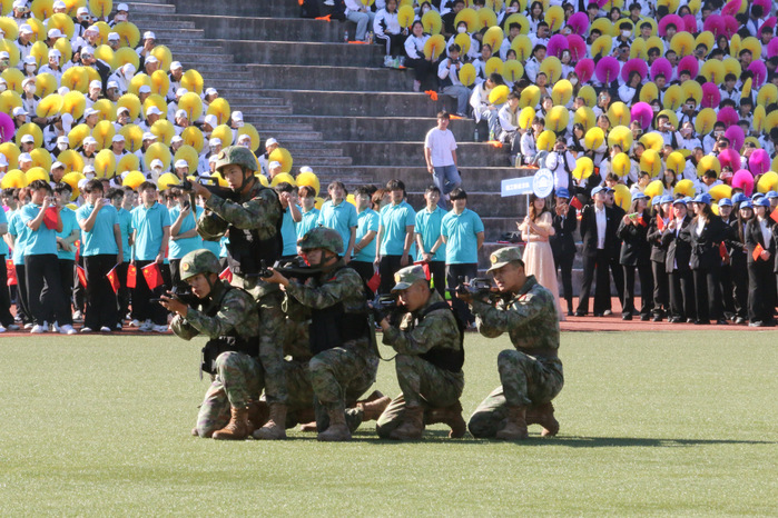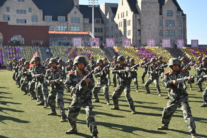 軍訓(xùn)匯報(bào)表演中的長(zhǎng)建學(xué)子,英姿颯爽、朝氣蓬勃。刺殺操、匕首操、拳術(shù)、旗語(yǔ)、刀術(shù)、花槍等輪番上陣,動(dòng)作干凈利落、英姿颯爽,傳遞出永不退縮、勇往直前的必勝信念。軍訓(xùn)教官們的壓軸表演更是將現(xiàn)場(chǎng)氣氛推向高潮,展現(xiàn)了退役軍人過(guò)硬的本色與擔(dān)當(dāng)。