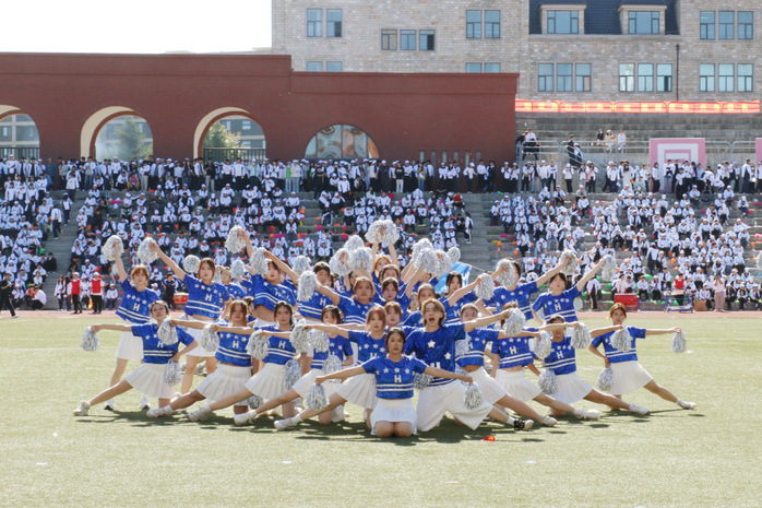 看臺(tái)上,師生們情緒激昂,吶喊助威聲此起彼伏。各學(xué)院啦啦隊(duì)用躍動(dòng)的身影和響徹全場(chǎng)的口號(hào)引爆熱情,她們猶如跳動(dòng)的音符,使熱烈的氣氛持續(xù)升溫,感染著在場(chǎng)每一個(gè)人。