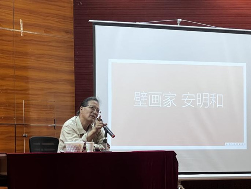 安教授的講座內(nèi)容豐富多元,既帶領(lǐng)聽眾追溯藝術(shù)傳承之路,講述自己在導(dǎo)師侯一民先生影響下的藝術(shù)成長(zhǎng),介紹《書魂》《抗震壯歌》等代表作所承載的藝術(shù)理念與時(shí)代精神;又拓展至壁畫藝術(shù)領(lǐng)域,以長(zhǎng)白山高鐵站壁畫項(xiàng)目為例闡釋壁畫在公共空間的價(jià)值,講解壁畫浮雕、地鐵壁畫的特色及壁畫稿的重要性;還深耕松花石文化,從歷史上的御用硯,到現(xiàn)代的茶具、工藝品、觀賞石,再到當(dāng)代創(chuàng)新的文創(chuàng)產(chǎn)品、景觀石應(yīng)用及《硯魂》雕刻,全面展現(xiàn)松花石的文化價(jià)值與發(fā)展路徑,同時(shí)提及北沉香琥珀木;最后縱覽藝術(shù)全景,解讀繪畫、書法篆刻各自的表現(xiàn)形式與文化底蘊(yùn),整體呈現(xiàn)出一場(chǎng)涵蓋藝術(shù)傳承、創(chuàng)新與多元領(lǐng)域的精彩分享,讓聽眾深入領(lǐng)略藝術(shù)與文化的深厚魅力。