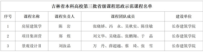 近日,吉林省教育廳下發了《關于公布吉林省本科高校第三批省級課程思政示范課程名單的通知》,學校的《房屋建筑學》《項目集訓營》《景觀設計Ⅱ》三門課程獲批為省級課程思政示范課程,為學校推動課程思政高質量發展注入新動能。
