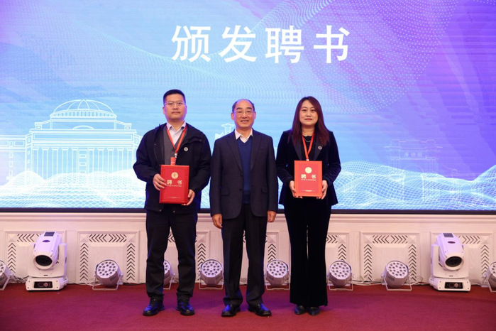 授牌授旗儀式后,學校領導為長春分會領導機構成員頒發聘書。