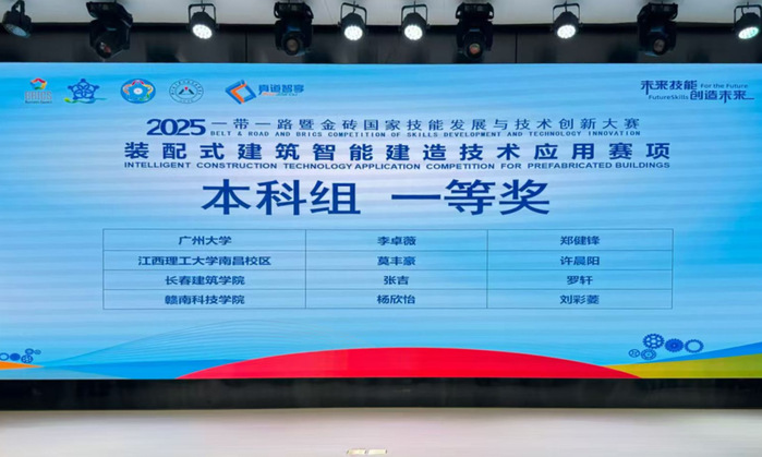 金秋十月,捷報頻傳。由學校土木工程學院李厚萱老師、常秋影副院長共同指導,張吉、羅軒兩名同學組成的學校代表隊,在2025一帶一路暨金磚國家技能發展與技術創新大賽全國總決賽中,憑借扎實的專業功底、齊心協力的拼搏精神,勇奪“裝配式建筑智能建造技術應用賽項”全國一等獎!同時,學校榮獲最佳組織獎!李厚萱、常秋影兩位老師獲評優秀指導教師!