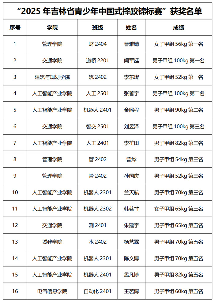 跤場(chǎng)逐夢(mèng)展鋒芒!長(zhǎng)春建筑學(xué)院摔跤隊(duì)征戰(zhàn)吉林省青少年中國(guó)式摔跤錦標(biāo)賽載譽(yù)歸來(lái)
