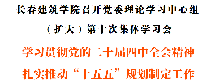 11月7日,學(xué)校召開(kāi)黨委理論學(xué)習(xí)中心組(擴(kuò)大)第十次集體學(xué)習(xí)會(huì),專(zhuān)題學(xué)習(xí)黨的二十屆四中全會(huì)精神,對(duì)學(xué)校學(xué)習(xí)宣傳、貫徹落實(shí)工作進(jìn)行部署。吉林省教育廳二級(jí)巡視員胡仁友列席會(huì)議。學(xué)校黨委書(shū)記李裕剛主持會(huì)議。學(xué)校在校領(lǐng)導(dǎo)班子成員、黨委理論學(xué)習(xí)中心組成員和黨建工作領(lǐng)導(dǎo)小組成員參加學(xué)習(xí)會(huì)。